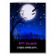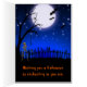 Ein wanderndes totes Skelett, das in der Nähe einer Hängerschlinge in einem Friedhof mit Vollmond und dunkelblauem Himmelshintergrund stehend ist. Sehr lustiges und beängstigendes Design für Ihre Halloween Grußkarten.