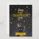 Stilvolles Halloween-Fest mit goldenen Sternen, halbmondfarbenem Mond und witzigen Schwänzen - perfekt für elegante Kostümlieder-Party, spukhafte Soirées und Katzenliebhaber. Mit dieser schicken, schwarzen Party Einladung bringen Sie Eleganz und Geheimnis zu Ihrem Halloween-Fest. Eine schwarze Katze in einem Hexenhut, die unter goldenen Sternen und einem glühenden Halbmond steht und eine Mischung aus gotischem Charme und himmlischem Stil schafft. Ideal für erwachsene Ansammlungen, Cocktailabende oder Kostümsoirées, die ein hochwertiges Halloween-Ambiente erwarten. Katzenliebhaber werden die witzige feline Touch bewundern, während die Gäste vom modernen, magischen Design verzaubert werden. Personalisieren Sie den Rücken mit Ihren UAWG Details, Event-Infos oder Kleidercode für eine stilvolle, sprichwörtliche Unterhaltung.