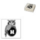 Eine Abbildung einer beängstigenden Brustkeule, die aus der Seitenansicht gezeichnet wurde. Der Vogel schaut über seine Schulter. Unter dem Eulenflügel befindet sich ein vergrößertes Auge, das als Rahmen für ein Monogramm dienen soll. Das M ist für Monogramm kurz und kann für Ihre Initialen personalisiert sein.