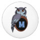 Eine Abbildung einer beängstigenden Brustkeule, die aus der Seitenansicht gezeichnet wurde. Der Vogel schaut über seine Schulter. Unter dem Eulenflügel befindet sich ein vergrößertes Auge, das als Rahmen für ein Monogramm dienen soll. Das M ist für Monogramm kurz und kann für Ihre Initialen personalisiert sein.