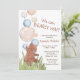 Wir können warten, um die guten Nachrichten mit Ihnen teilen, mit diesem bezaubernden Bären und Ballon-Thema Einladung. Set ein lustiges und gemütliches nostalgisches Thema mit diesem niedlichen schwimmenden Teddy, wie Sie ein neues Baby begrüßen!