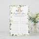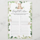Die Rennspielkarte von ABC mit Bärendesign und Babydusche bietet eine Aquarellbärendarstellung und eine Aquarellgarage mit Eukalyptusgarten und einen eleganten Schriftart in handgeschriebenem Stil.