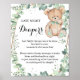 Bear Greenery Spate Night Diaper Dusche-Spiel-Zeic Poster