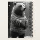Adorable Bär mit einem gemütlichen Pullover, Set gegen einen winterlichen Wald. Das warme und einladende Bild erinnert an Gefühle des Komforts und der Entspannung. Das skurrile Design bringt Ihnen ein Lächeln ins Gesicht und ist ideal für Tierfreunde und Naturliebhaber.