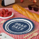 Weiße Papierplatte mit weißen Streifen und einer bearbeitbaren Hintergrundfarbe (klicken Sie auf Anpassen, um sie zu verändern). Personalisieren Sie es, indem Sie den Platzhalter-Text ersetzen. Für weitere Optionen, wie zum Beispiel den Schriftart zu ändern und ihn zu vergrößern oder zu verändern, klicken Sie auf den Button "Anpassen". *Bitte beachten Sie, dass das Zazzle-Wasserzeichen, das in der Zoomvorschau angezeigt wird, NICHT auf dem gedruckten Endprodukt erscheint. © Rosewood and Citrus