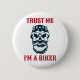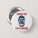 Komisch anpassbarer Knopf mit Bartschädel und den Worten "Vertraue mir, ich bin ein Biker".