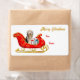 Auf diesen Holiday Geschenktickern sitzt ein Bartded Collie Hund in einem hübschen, rot-goldfarbenen und dekorativen Schlitten. Neben dem Hund sitzen Geschenkpackungen mit bunten Bögen. Im goldenen Text rechts steht "MERRY CHRISTMAS" und Ihr eigener Text ist rot. Ideal für Ihre Weihnachtsgeschenke! Im Dog Village gibt es viele weitere Images und Produkte der Rasse.