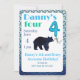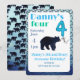 Beary Awe some 4th Birthday Invitation. This handsome black bear illustration is perfect for big guy’s fourth birthday party. Gather up your family and friends and celebrate the fourth year. Your big boy is turning four. He loves bears! Make his birthday Beary awesome with pin the tail on the bear and other growly bear games.