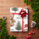 Süßes Aquarellbären in Weihnachtsmannmützen mit Kiefernbäumen, kleinen Geschenken und Schnee. Personalisieren Sie sich mit einem Kindernamen für eine gemütliche, kinderfreundliche Weihnachtsverpackung in warmen, neutralen Grüntönen.