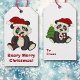 Dieses bezaubernde Weihnachtsgeschenk-Tag zeigt einen niedlichen Cartoon Panda Bär in einer roten Weihnachtsmannmütze gekleidet und nibbling auf einem rot-weiß gestreiften Bonbons. Unter dem Bild ist der rote personalisierbare Text Beary Frohe Weihnachten. Bild und Text werden auf einem weißen Hintergrund platziert. Die Rückseite des Anhängers hat ein anderes Bild desselben Bären, hinter ihm steht ein grüner Ferienbaum. Sie können das benutzerdefinierte Feld für die An- und Von-Informationen ausfüllen, wenn Sie möchten, oder es leer verlassen, um von Hand zu schreiben. Besonders attraktiv für Kinder! *Dank Real Deal Clipart für den Clipart, der für dieses Design verwendet wurde. http://realdealclipart.com * Dieses Geschenketikett passt zu der Panda Bärenkuchen-Geschenkpackung in unserem Shop.