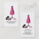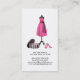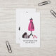 Carte avec l'illustration de mode d'une robe de cocktail sur un mannequin de forme de robe d'ouvrière couturière et des chaussures assorties de talon haut. C'est une carte bilatérale, avec des images sur l'avant et le dos pour un plus grand impact visuel.
