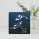 Belle Orca Whales Faire-part de mariage avec un arrière - plan étoilé dans les tons bleu, blanc et noir. Ce design est parfait pour les mariages de destination et de plage.