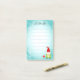 Beau gnome sur note post-it bleu turquoise et blan