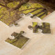 110 pièces de puzzle se réunissent pour créer cette belle scène d'un vieil arbre tordu dont les branches s'étendent sur un petit étang, jaune brillant au soleil matinal.