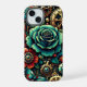 Joli thème floral steampunk avec des engrenages métalliques, roses et bijoux. Or, bordeaux et turquoise.