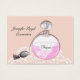 Joli flacon d'atomiseur de parfum d'inspiration vintage sur un arrière - plan en dentelle rose et blanche; un carte de visite élégant et élégant à double face adapté à de nombreuses entreprises que ce soit la mode, cosmétiques, maquillage, détaillant de parfums ... Facile à customiser avec vos données personnelles d'affaires sans frais supplémentaires.