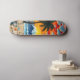 Beach art skateboard. An impasto oil painting style ai illustration of a beach full of palm trees, sea glass, sea shells and ocean waves at sunset. A bright colorful mesh of colors make this coastal art vibrant and beautiful!