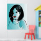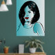 Dieses Poster zeigt eine stilisierte Originalvektorillustrierung einer hübschen Frau mit einem üppigen Haarstil in Blautönen. Eine großartige originelle Wandgrafik für einen Schönheitssalon oder Ihre Zuhause.
