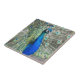 Keramik-Kachel mit dem Foto-Bild eines wunderschönen, blauen Pfauens mit bunten Federn. Wählen Sie Ihre Kachelgröße aus. Eine tolle Küche trivet!