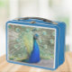 Für Pfauenfans! Nehmen Sie Mahlzeiten an der Arbeit und Schule mit dieser trendigen, Metall-Lunchbox, die das Foto eines wunderschönen blauen Pfaues mit bunten Federn zeigt. Wählen Sie die Farbe Ihres Lunch Box aus.