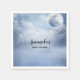 Papierservietten mit einem magischen Fantasiehimmel mit flauschigen blauen Wolken und einem großen schönen Mond. 2 weiße Schwäne fliegen zusammen ab.