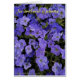 Auf dieser senkrechten Grußkarte sind wunderschöne blaue violette Blätter eingeprägt. Herrlich in den Tönen von Blues und Purpur! Im Text steht: "Der süße Geruch von Petunias..." Passen Sie dies an, indem Sie Zazzle's verschiedene Schriftart Stile und Farben verwenden. Dieses Bild kann auf andere Produkte übertragen werden. Wenn Sie Hilfe benötigen, zögern Sie bitte nicht, mich zu kontaktieren, und ich werde Ihnen gerne behilflich sein. Sie können mich über meine Wolf Moon Art und Design Facebook Seite kontaktieren. Sie können den Link auf meiner Seite über Seite in meinem Geschäft finden. Schauen Sie sich den unteren Teil der Seite an, wo es steht "Verbinden Sie mit Wolf Moon Art and Design". Original Fotografie Copyright 2017 von Karen Coffelt.