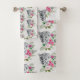 Handtuchhalter mit schönem Set mit grauem, schwarz-weißem Leopardenportrait. Dieses hübsche Tier ist von einer tropischen Blume umgeben. Elegant, exotisch und schön.