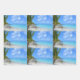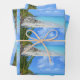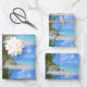 Wrapping paper sheets with a scenic tropical photograph. A secluded beach with white sand and turquoise water.
