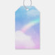 Geschenke Tags mit einem Bild eines Einhorns mit großen blauen Augen, rosa Flügel und einem Regenbogenmane und Schwanz. Kawaii niedlich.