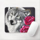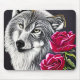 Das ist ein wunderschöner Wolf mit rote Rosen.