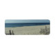 Der Strand ist wunderschön am Ufer mit weißem Sand, dem Ozean und dem schönen blauen Himmel.