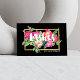 Ein schönes und elegantes Design-Motiv mit einem farbenfrohen Bouquet Blume ragt hinter dem Wort "Lashes" hervor. Gerahmt in einem Imitat aus metallischer Goldfolie und personalisiert mit Ihrem Namen darunter, ist dies der perfekte Wimpernverlängerungssalon für Visitenkarten. Das doppelseitige Design ermöglicht Ihnen viel Platz für Ihre Kontaktinformationen auf der Rückseite. Kunst und Design © 1201AM CREATIVE