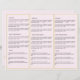 Ein rosa Hintergrund mit goldenen Akzenten ist die Grundlage dieses Beauty Wellness-Center Service Menü Ein moderner Schriftart in Goldfarbe. Die Namen und Serviceinformationen werden für Ihre Informationen leicht geändert. Teil einer Reihe von Büros stationär von Chessie's Fine Designs.
