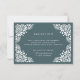 Diese elegante Empfang-Karte wurde für die Abstimmung mit unserer Hochzeitskollektion Beaux Arts entworfen und zeichnet sich durch einen weißen Rahmen im Stile eines Papels Picados aus, der Ihre Hochzeitsempfangsdetails, das Timing und die Adresse auf einem dunklen Fichtengrün umrahmt.