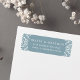 Die Rücksendeadressen-Aufkleber im Art Deko-Stil zeichnen sich durch ihre Rücksendeadresse in weißen Schriftzeichen auf einem staubigen, schieferblauen Hintergrund aus, der an den Ecken im Pikadostil mit laky weißem Papel verziert ist. Entworfen, um unsere Beaux Arts Veranstaltungsportery Kollektion in Tourmaline zu ergänzen.