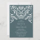 Eleganter Jahrgang Hochzeitseinladungen in reichhaltigem Fichtengrün mit verzierten Details, die das Aussehen von geschnittenem Papier in einem papel picado Stil.