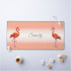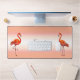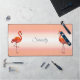 Beaux Flamants roses roses sur le Mat de bureau rose corail clair. Le texte peut être personnalisé.