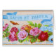 C'est l'une des images vintages les plus gentilles de différents roses de couleur. Elle est simplement parfaite. Il y a les roses roses et rouges. Voler au-dessus de eux est un papillon. Il est d'un étiquette français.