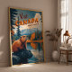 Bewundern Sie die Schönheit Kanadas mit diesem Vintage-Reiseplakat mit dem ikonischen Biber. Diese im Retrostil gestaltete Wandkunst spiegelt den Charme der kanadischen Tierwelt und der atemberaubenden nordamerikanischen Landschaften wider. Dieser Ausdruck ist perfekt für Naturliebhaber, Hüttendekoration und Reisende. Er ist ein durchdachtes Geschenk oder eine einmalige Ergänzung zu Ihrer Zuhause. ・ Retro Reiseplakat Design ・ Features Kanadas heimisches Tier - der Biber ・ Ideal für Zuhause-, Büro- oder rustikale Kabinendekoration ・ Gutes Geschenk für Wildtiere und Outdoor-Liebhaber