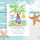 L'invitation au baby shower à thème plage et surf comprend une légende "bébé à bord", une île tropicale aquarelle avec surf, palmier, kawaii soleil et étoiles de mer. La couleur dominante est le violet muet, il est donc parfait pour les garçons et les filles. Montré ici comme une invitation à la douche en couple, mais vous pouvez personnaliser le nom pour être pour un couple ou simplement utiliser le prénom et le nom de famille de la maman-to-be. Art par KL Stock