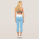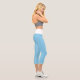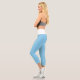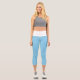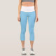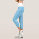 Couleur moyenne et solide "Bleu Bébé" Leggings Capri personnalisés avec bande de taille blanche. Baby Blue est un bleu très doux. Code hexadécimal du produit : #89cff0