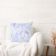 Coussin bleu et blanc pour la chambre bébé, avec des bulles flottantes et des papillons.