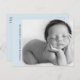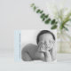 Faire-part de naissance bébé, photo. Arrière - plan bleu. Moderne. Filtre noir et blanc appliqué à la photo.