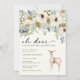 Cette élégante invitation à baby shower "oh cerf" d'hiver boho présente de belles aquarelles peintes à la main, des feuilles et des baies bleu poussiéreux, des fleurs d'anémones crème, de la végétation sauge et des pinecones disposés comme un cadre élégant sur un ivoire | arrière - plan crème et un adorable cerf aquarelle. Trouvez les articles correspondants dans la collection de Mariages Floraux Bleus Dusty d'hiver.