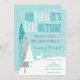 Bébé c'est invitation extérieure froide de baby shower avec une scène neigeuse d'hiver en aqua, gris et sarcelle d'hiver et un petit cerf commun doux.