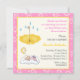 Une petite fille qui dort saupoudre une invitation carré jaune rose, avec une petite fille qui dort sur un nuage, une lune croissant et une étoile dessus et un parapluie jaune avec gouttes d'eau. Il y a une ligne jaune autour et une bordure rose avec des cercles et des points blancs. Une invitation mignonne avec un adorable bébé parfait pour un bébé saupoudré ou douche. Quelques éléments de Trina Clark et avec l'aimable autorisation de vectorportal.com.