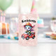 Un dragon de bébé ludique, portant l'uniforme et le casque d'un pompier, conduit joyeusement un camion de pompier de jouet rouge vibrant. Ses ailes sont d'un bleu délicat, apportant du charme à la scène fantaisiste.