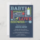 Cette invitation baby shower présente un mélange coloré et audacieux d'icônes pour bébés modernes.