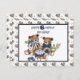 Célébrez le demi-anniversaire de votre bébé garçon avec cette carte mignonne. Une famille d'ours et leur petit garçon dans un cadre de marine sombre, Un arrière - plan d'ours derrière un rectangle de marine.