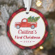 **** N'oubliez pas de télécharger votre photo préférée au dos. Si vous n'avez pas besoin du placement photo, vous pouvez le retirer à l'aide de l'outil de conception ***** Célébrez le premier Noël de votre bébé avec cet ornement photo rouge de camion de Noël. Ajoutez une photo et un texte préférés à ce design gracieux pour un accent festif à votre arbre de Noël. Il est facile de personnaliser pour être le vôtre.